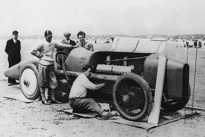 Sir Malcolm Campbell and ‘Blue Bird’ breaking the 150mph barrier at Pendine Sands 1925 (c) copyright the Mike Varndell Collection